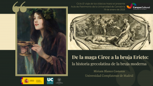 Cuando pensamos en aquellos aspectos de nuestra cultura que nos conectan con el mundo grecorromano solemos pensar en la arquitectura de nuestros pueblos y ciudades, en nuestra historia… Pero hay otros muchos aspectos en los que la tradición clásica pervive entre nosotros. Dentro de la temática de la tradición y la recepción clásicas que vertebra el Ciclo El viaje de los clásicos hasta el presente, organizado por el Aula de Patrimonio de la Universidad de Cantabria, el 19 de enero he tenido el placer de hablar sobre las raíces grecolatinas de la figura de la bruja mediante un recorrido cronológico por la literatura griega y latina, desde la figura de Circe (Odisea) a la bruja Ericto de Lucano. En este se analizó la formación y evolución de los rasgos de estos personajes y la función de estos tipos -con todo su bagaje de estereotipos y motivos asociados-, con especial atención en la dimensión retórica y social del discurso de la magia y el discurso de género en la construcción de los relatos sobre brujas en la Antigüedad. La finalidad fue hacer ver que también en la figura de la bruja somos herederos de Grecia y Roma.