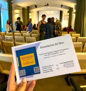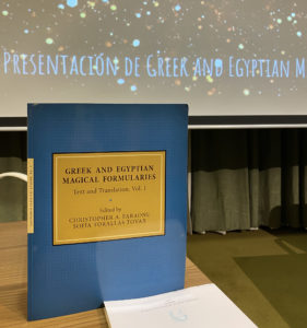 Choosing Tuesday 13th to launch this book is no coincidence: we are talking about the first volume of Greek and Egyptian Magical Formularies (GEMF). This volume, the first in a series of two, is the result of many years of work by a large international team of experts (papyrologists, Greek philologists, Demotic experts, historians of religions, etc.) coordinated by Sofia Torallas and Christopher A. Faraone (University of Chicago). This research work, developed under the auspices of the Project Transmission of Magical Knowledge in Antiquity: The Papyrus Magical Handbooks in Context, aims to offer the public a new vision of the great Greco-Egyptian magical handbooks. This volume is, therefore, the first tangible output of this project.
